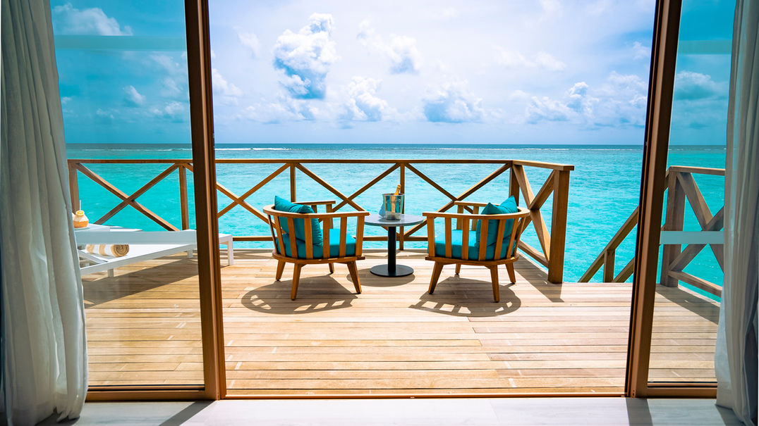 Our largest overwater suite, 280-square meters; this luxurious villa features modern furniture with colours that complements the amazing landscape. This corner of heaven is ideal for submerging in a special retreat, far from the busy life. It has a big private deck with sunbeds, a gorgeous lagoon setting with a private pool and sunset view. The suite offers everything you could want for an exclusive, romantic and unforgettable holiday in the Maldives.