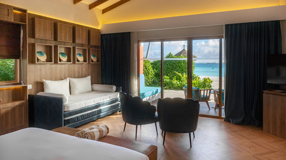 Joy’s Beach Suites with Pool are the ultimate in self-indulgence. Guests can enjoy a large, 100-square meters suite with sunset view that comes with a private pool overlooking the beach.